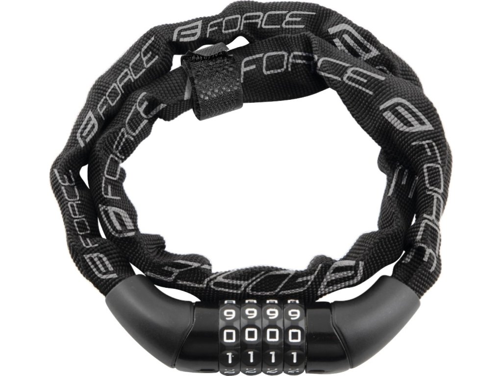 Zámok FORCE CHAIN reťazový, kódový 120cm/4mm, čierny